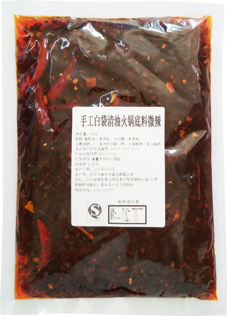 詳細信息 ![]() ![]() ![]() ![]() ![]() 主要經營:公司擁有調味品、方便食品、肉制品、蔬菜制品的生產資質。主要產品覆蓋火鍋底料、辣椒紅油、干鍋香鍋底料、面食調料、粉類調料等標準化小調料包,以及酸辣粉、綿陽米粉、新疆炒米粉、自熱火鍋等方便食品的研發(fā)與定制。" |