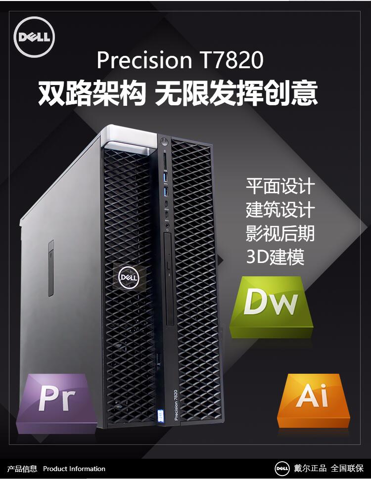 戴爾(DELL)T7820圖形工作站電腦主機(jī)銀牌4214R/32G內(nèi)存/256G固態(tài)/RTX4000 8G/23.8英寸顯示器/三年保修/K |