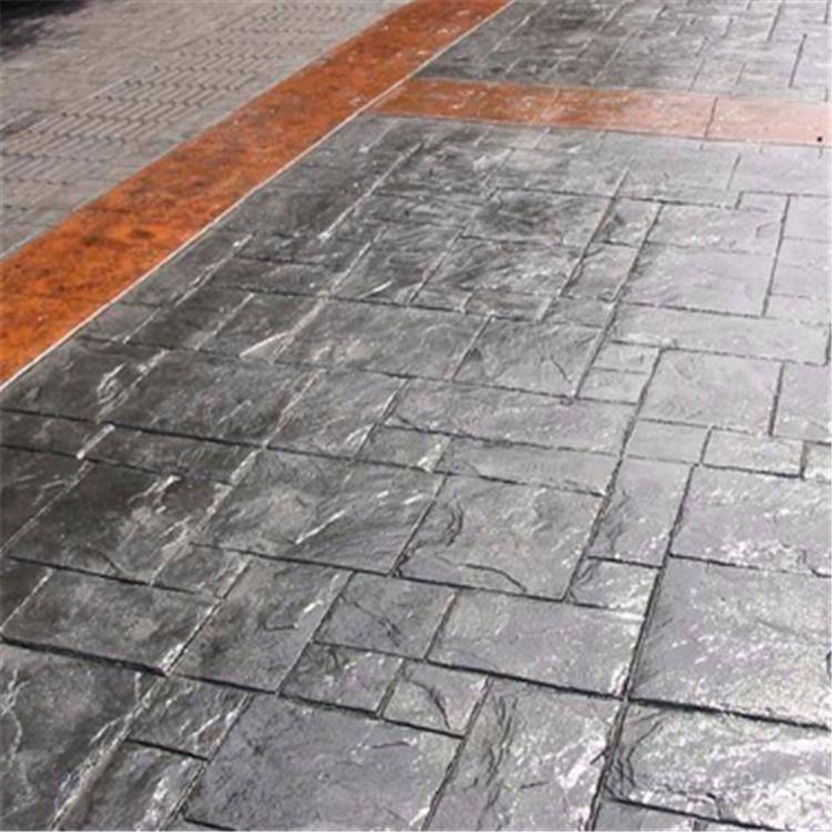 5、使用藝術(shù)地坪模具對(duì)地坪面層進(jìn)行紋理處理。藝術(shù)地坪模具應(yīng)配套使用,首先確定好紋理的分布方向,選好一塊模具放置的位置和角度,然后其它的模具依次緊貼一塊模具放置。彩色混凝土藝術(shù)地坪壓模采用壓模,壓模應(yīng)由技術(shù)較好的人員進(jìn)行作業(yè)以保證壓紋深度一致和模具放置的準(zhǔn)確性。