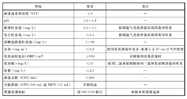 1 我國游泳池初次充水和補水水質要求